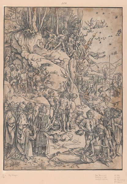 Beschriftung: "Dürer Albrecht, Marter der Zehntausend von Nikomedien" (verso, unten Mitte)